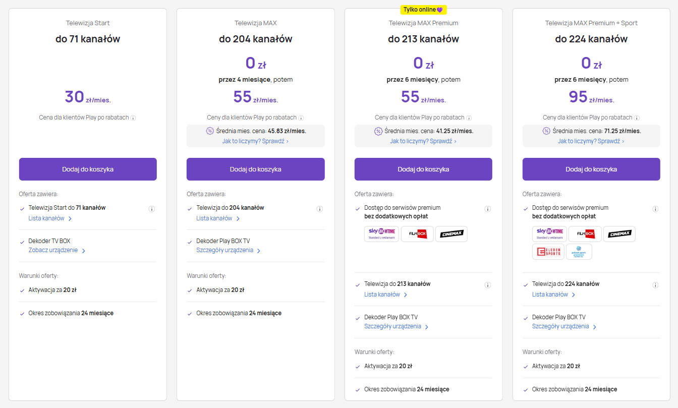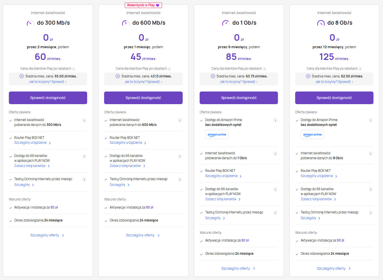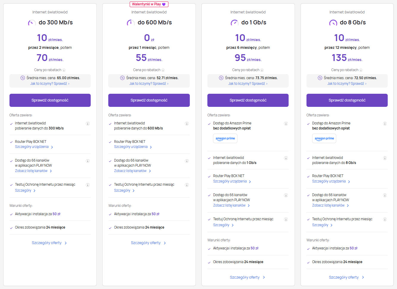 Opłata aktywacyjna wynosi 20 zł (jednorazowo), a umowa podpisywana jest na 24 miesiące. Oferta dostępna jest dla obecnych klientów Play.