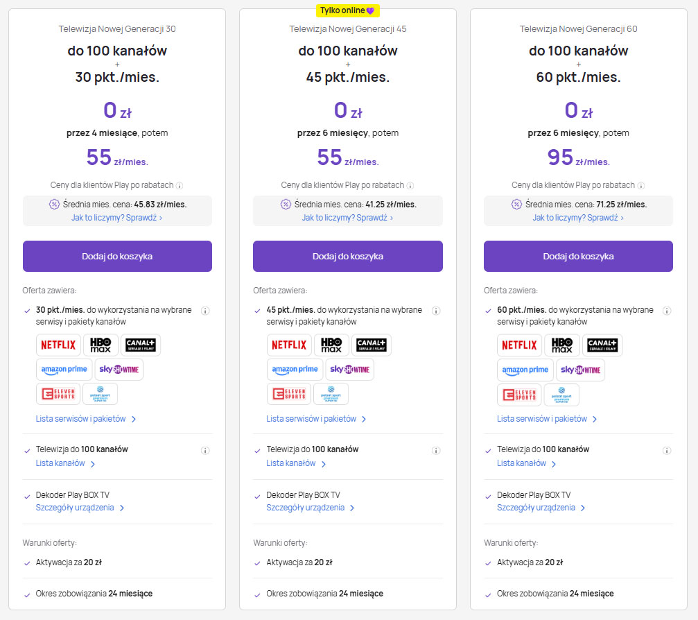 To propozycja dla obecnych klientów Play. Nowi abonenci będą musieli zapłacić za ten sam pakiet 10 zł drożej, czyli 55 zł.
