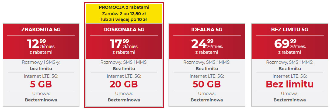 Abonament „Bez Limitu” dostępny jest na umowie bezterminowej, z miesięcznym okresem wypowiedzenia, bez długoterminowego zobowiązania.
