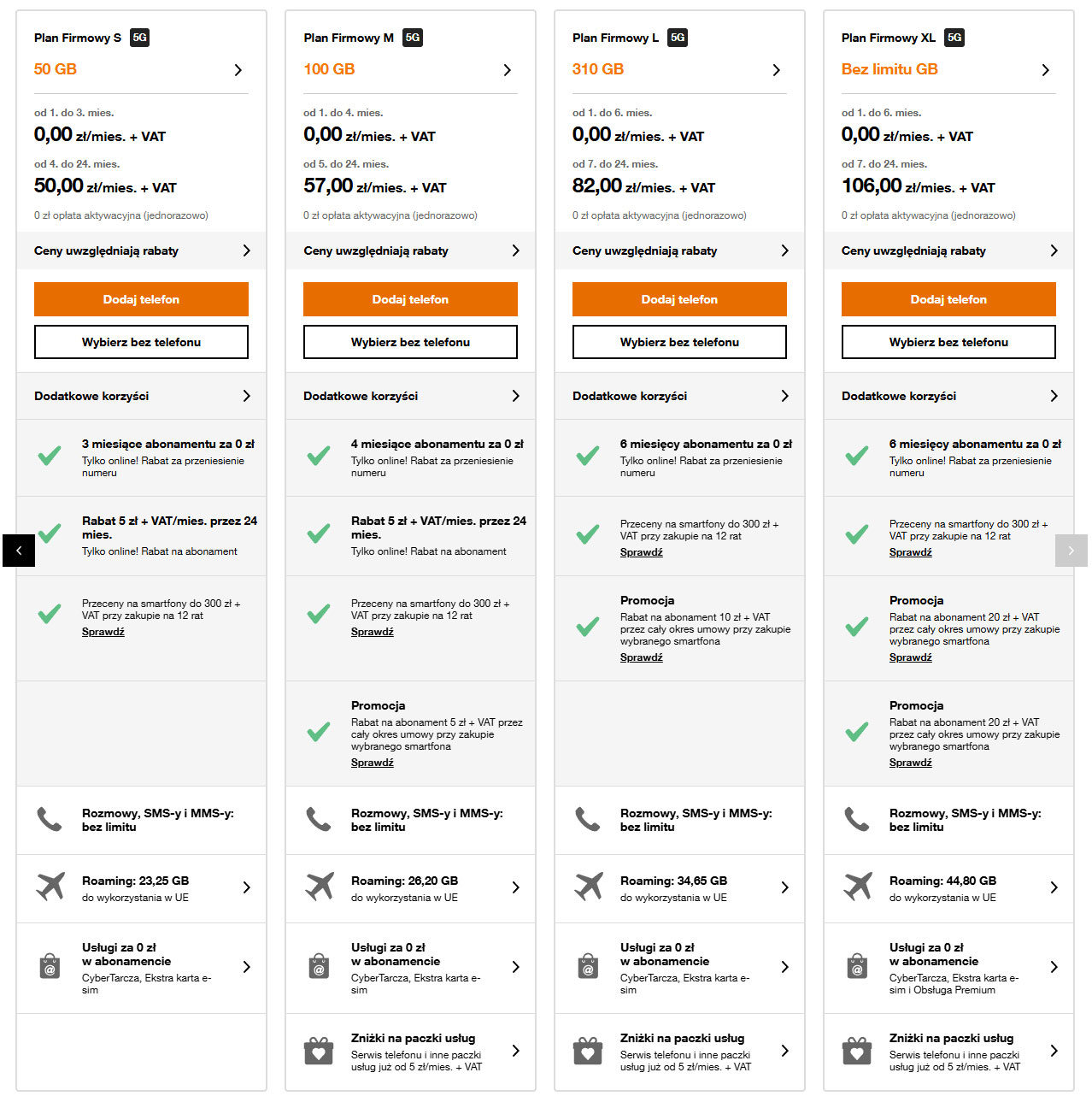 Równolegle startuje kolejna odsłona akcji Cenowe smartokazje dla firm, w której mają pojawić się kolejne urządzenia w niższych cenach. Orange rozwija też pakiety internetu stacjonarnego dla biznesu. W zależności od wybranej opcji przedsiębiorcy mogą liczyć nawet na 12 miesięcy bez opłat przy prędkości do 8 Gb/s i wybranych paczkach usług albo na 6 miesięcy bez opłat przy niższych wariantach. Do części ofert można dobrać również telewizję i dodatkowe pakiety, takie jak HBO z HBO Max, CANAL+ czy Polsat Super Sport.