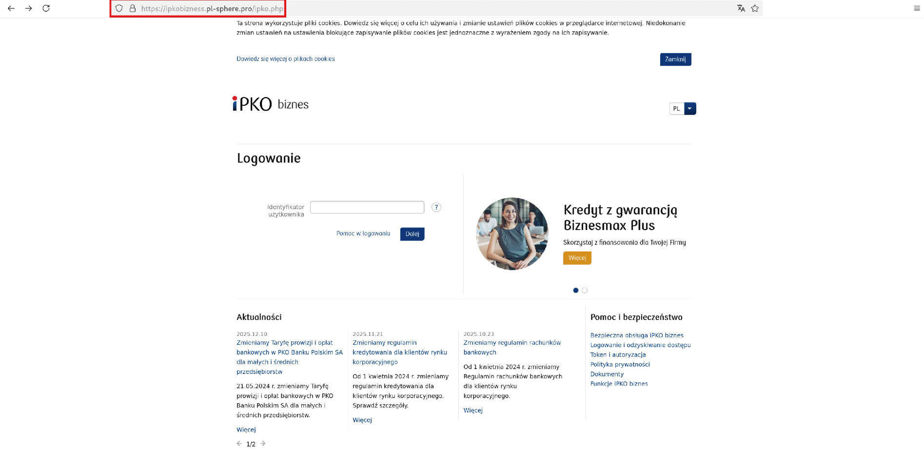 Na pierwszy rzut oka strona stworzona przez oszustów wygląda wiarygodnie – zawiera logo banku, znajomy układ oraz formularz logowania. Różnice często widoczne są dopiero w pasku adresu przeglądarki.