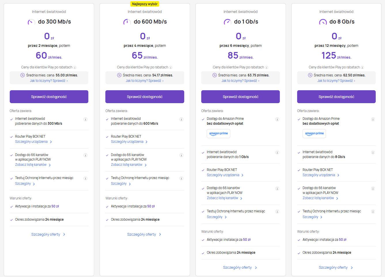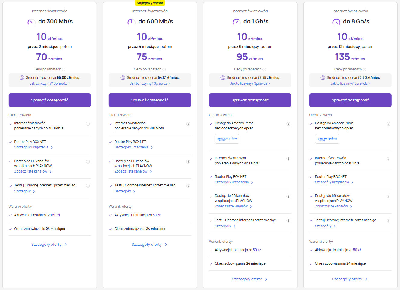 W ramach akcji można wybrać internet światłowodowy o prędkości od 300 Mb/s do 8 Gb/s, a przy najwyższym wariancie operator oferuje abonament za 0 zł przez pierwsze 12 miesięcy. Niezależnie od tego, na jaką prędkość zdecyduje się klient, do pakietu można dobrać tablet z rabatem 50%. W ofercie przewidziano też dostęp do Amazon Prime.