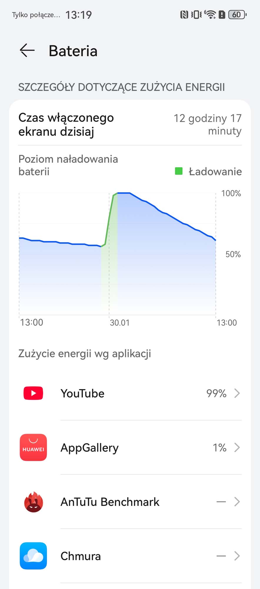 Huawei Mate X7 w naszym teście rozładował się do 60% baterii po upływie niecałych 12 godzin. Oznacza to, że do pełnego rozładowania potrzeba by blisko 30 godzin używając zewnętrznego ekranu. To doskonały wynik, w czołówce dowolnej odmiany smartfonów.