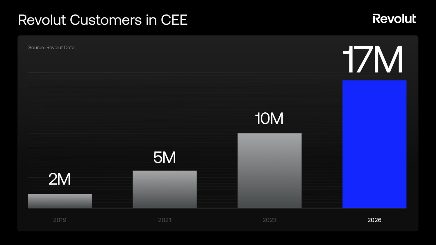 W regionie CEE Revolut przekroczył w 2025 r. próg 17 mln klientów detalicznych, notując wzrost o 23 proc. rok do roku. Średnio co 10 sekund pozyskiwany był nowy użytkownik, a w całym 2025 r. baza klientów zwiększyła się o ponad 3 mln osób. W Polsce z aplikacji korzysta już ponad 5 mln klientów, co oznacza 27-procentowy wzrost rok do roku i około 15 proc. penetracji rynku.