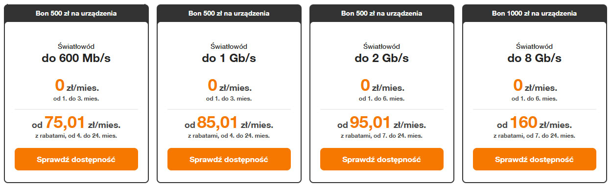 Oferta światłowodowa jest dla konsumentów, którzy między 4 listopada 2025 r. a 4 stycznia 2026 r. zamówią światłowód lub pakiet usług ze światłowodem o prędkości od 600 Mb/s, z umową na 24 miesiące. Instalacja musi odbywać się w lokalizacji, w której 4 listopada 2025 r. nie była jeszcze dostępna usługa światłowodowa Orange. Jeden klient może otrzymać tylko jeden bon; w przypadku rezygnacji z umowy lub braku aktywacji usługi bon nie przysługuje.
