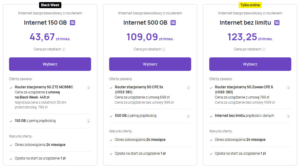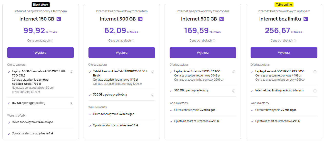 Wszystkie opisane oferty zawierają 24-miesięczny okres zobowiązania.
