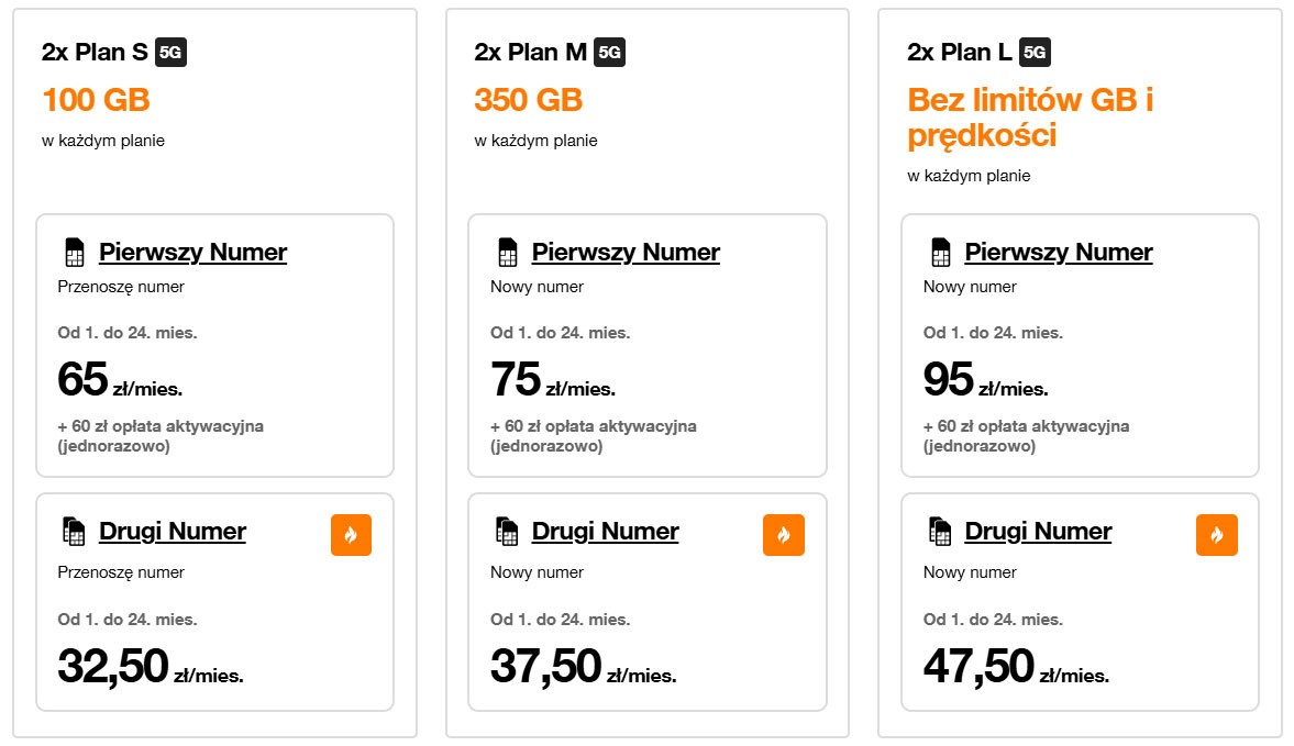 Przy zakupie dwóch numerów w Planie S można więc zapłacić łącznie od 97,50 zł/mies.