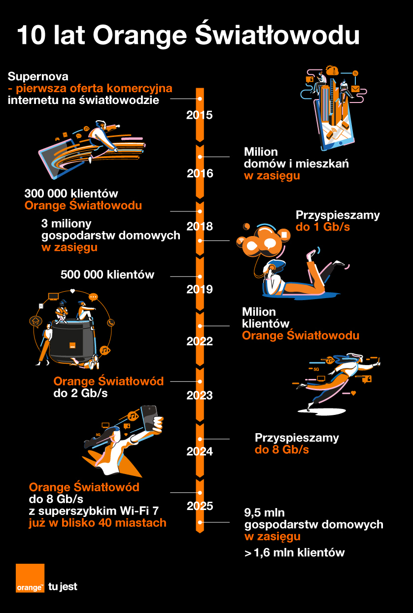 Dziś Orange Światłowód rozpędził się do 8 Gb/s, ma już ponad 1,6 mln klientów, dociera do 9,5 mln adresów.