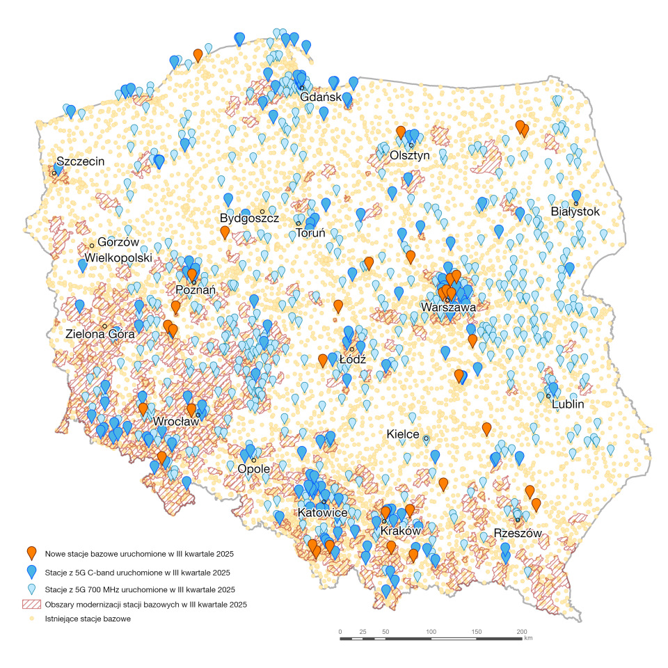 5G w paśmie C uruchomiono na blisko 170 stacjach bazowych w całej Polsce. Najwięcej w województwach mazowieckim, śląskim, dolnośląskim i małopolskim.