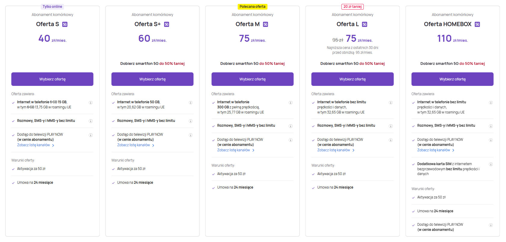 RODZINA GRUPA M 5G (75 zł), RODZINA GRUPA L 5G (95 zł) i RODZINA GRUPA HOMEBOX 5G (110 zł):