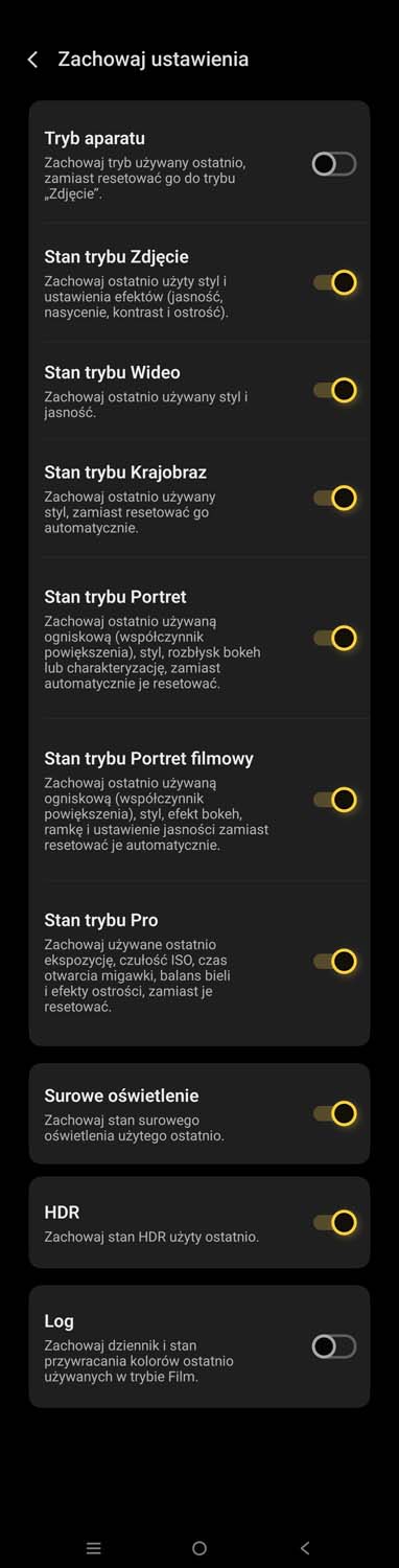 Jedną z najbardziej irytujących cech smartfonów jest resetowanie ustawień po zamknięciu aplikacji. Wiele telefonów pozwala wybrać niektóre ustawienia, które mają zostać zachowane, jak choćby ostatnio używany tryb aparatu. W przypadku vivo X300 Pro menu „Zachowaj ustawienia” jest znacznie bardziej rozbudowane. Możesz wymusić na telefonie zapamiętywanie ostatnio używanego trybu (np. Pro zamiast wracać do Auto), a także – co kluczowe dla filmowców i fotografów – zachowanie ustawień ekspozycji, balansu bieli, a nawet stanu trybu Log czy surowego oświetlenia. Teraz możesz skonfigurować pod siebie poszczególne tryby aparatu, włączyć go i mieć skonfigurowany tak, jak go zostawiłeś.