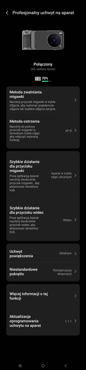 Dzięki tym ustawieniom Imaging Grip przestaje być tylko "uchwytem z baterią", a staje się integralną częścią interfejsu, która mechanicznie przybliża doświadczenie fotografowania smartfonem do pracy z profesjonalnym aparatem.