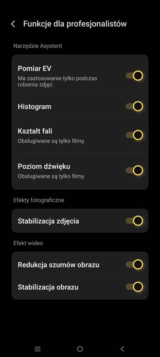 W menu „Funkcje dla profesjonalistów” znajdziemy narzędzia żywcem wyjęte z monitorów podglądowych: