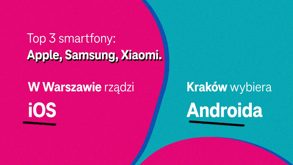 Jeśli chodzi o urządzenia, podium producentów wygląda klasycznie: Apple, Samsung i Xiaomi. Systemowo mapę podzielił rozkład sił: w Warszawie rządzi iOS, natomiast Kraków częściej wybiera Androida.