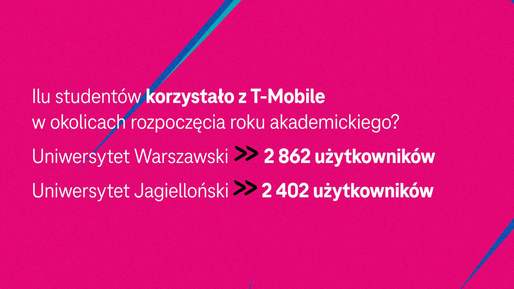 Operator policzył też aktywnych użytkowników w zasięgu kampusów. Na Uniwersytecie Warszawskim z T-Mobile korzystało 2862 studentów, a na Uniwersytecie Jagiellońskim 2402 osób.